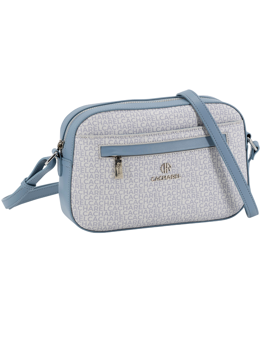 Estampado logotipo CACHAREL. Este modelo cuenta con una correa larga ajustable y bolsillo en la parte delantera y trasera del bolso.