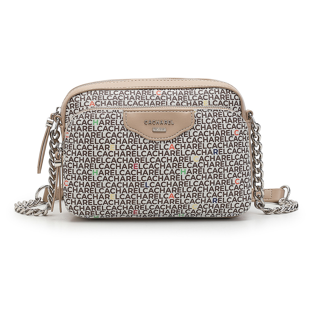 Estampado logotipo CACHAREL. Este modelo cuenta con una correa larga ajustable y bolsillo en la parte delantera y trasera del bolso.