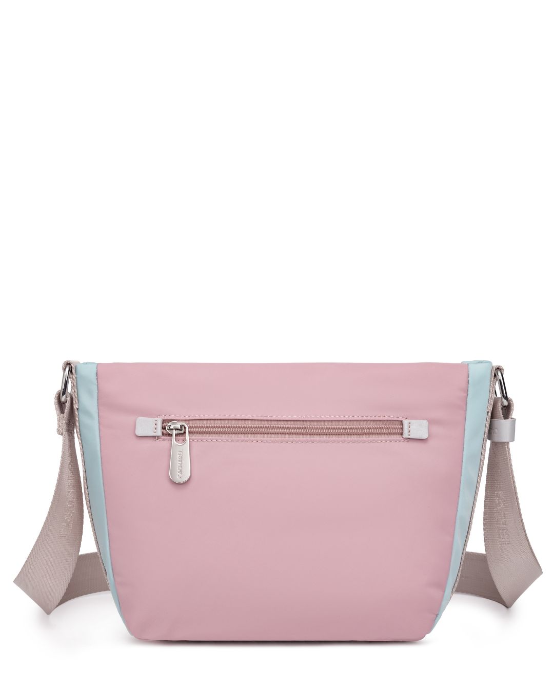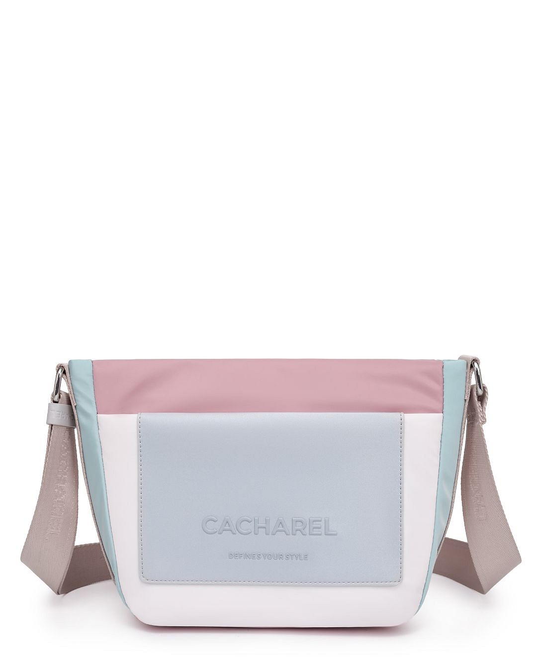Bolso bandolera confeccionado en nylon, un material ligero y resistente, perfecto para el uso diario. Presenta un diseño en bloques de color con tonos suaves y modernos que aportan un estilo actual y versátil.