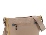 Bolso bandolera confeccionado en nylon, un material ligero y resistente, perfecto para el uso diario. Presenta un diseño en bloques de color con tonos suaves y modernos que aportan un estilo actual y versátil.