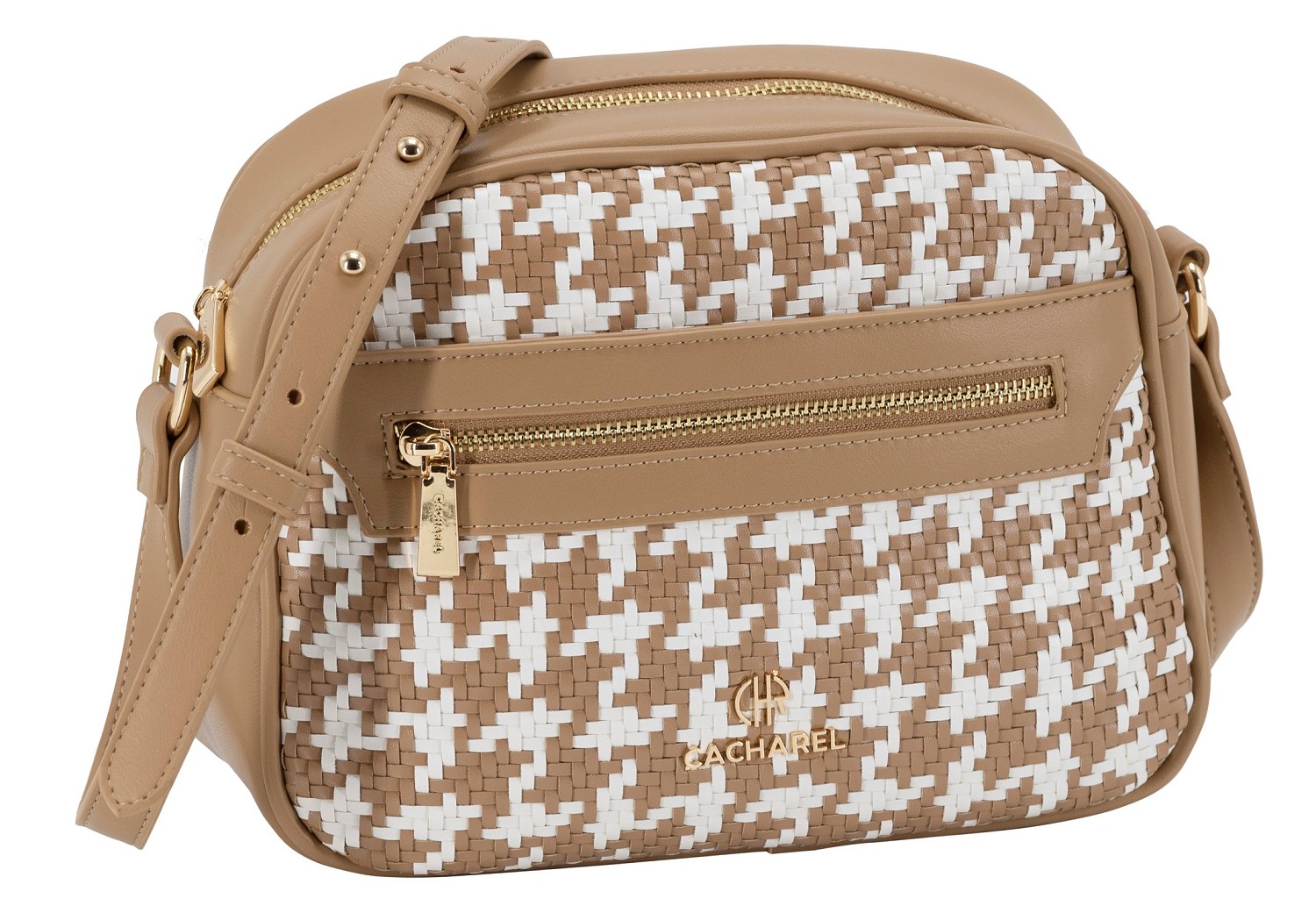 Bandolera pata de gallo con bolsillo delantero y un bolsillo trasero con asa ajustable personalizada.