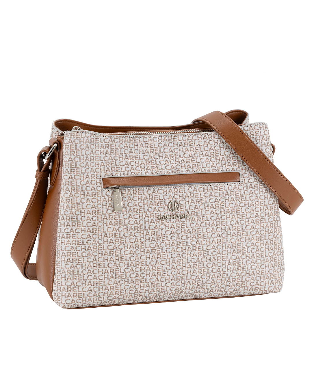 Elige funcionalidad con la bandolera de asa regulable. Dispone de tres compartimentos y con el diseño del print de cacharel.