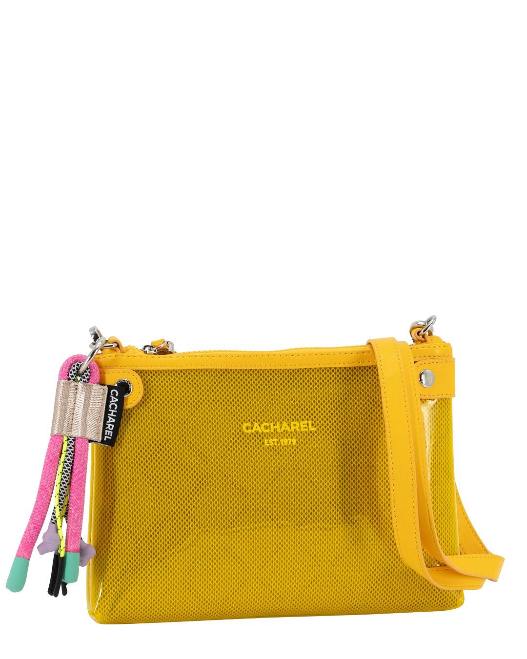 Cuenta con asa bandolera regulable, que permite adaptarlo cómodamente al hombro o cruzado. En la parte frontal destaca el logo de CACHAREL al tono, integrado de forma elegante y discreta. Como detalle distintivo, incorpora un charm decorativo multicolor, que añade un punto desenfadado y original.