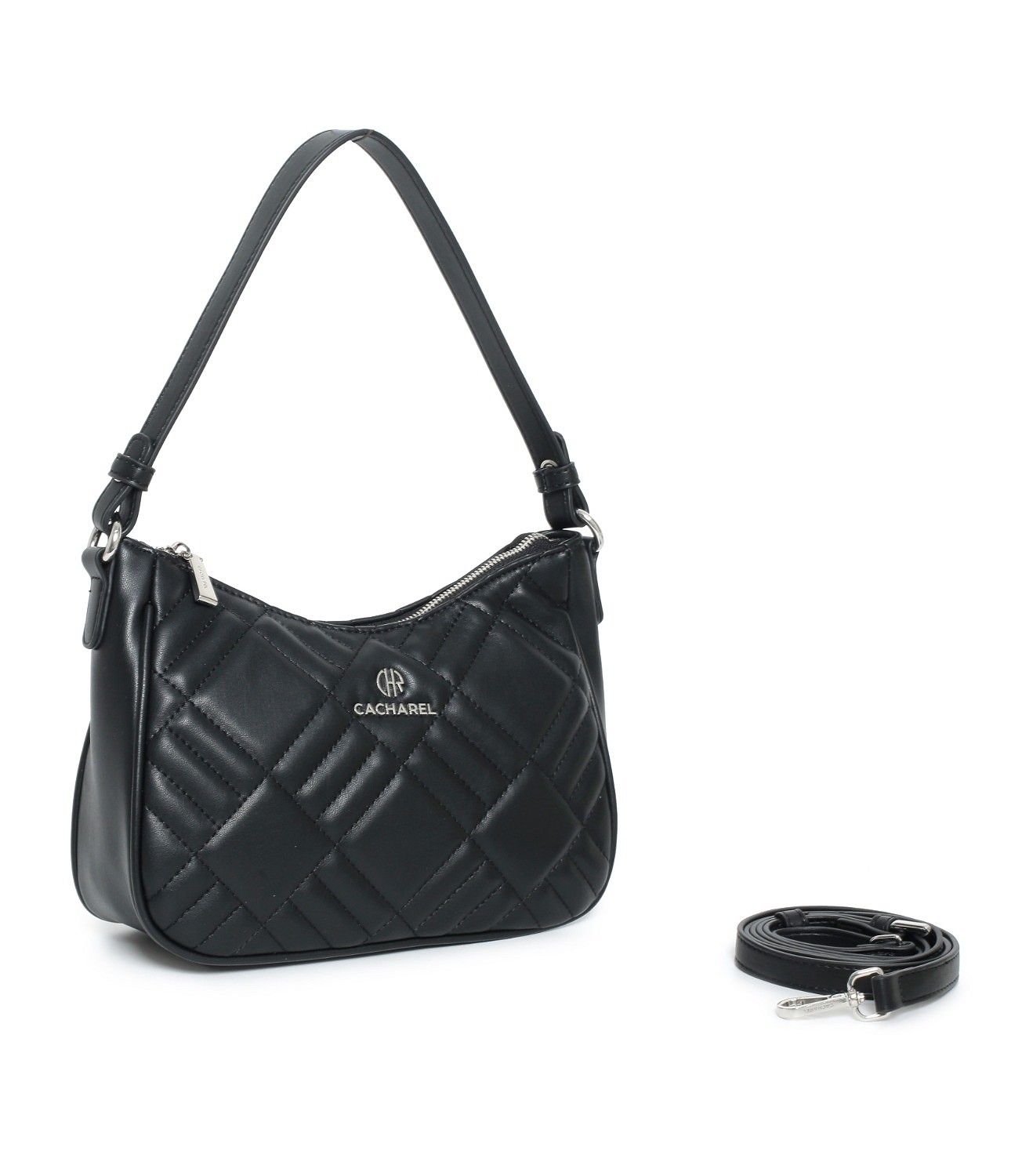 Bolso con novedoso alcolchado con asa de hombro y asa bandolera. Cierre con cremallera. Logo metálico en la parte delantera del bolso. Tiradores personalizados y varios bolsillos interiores.