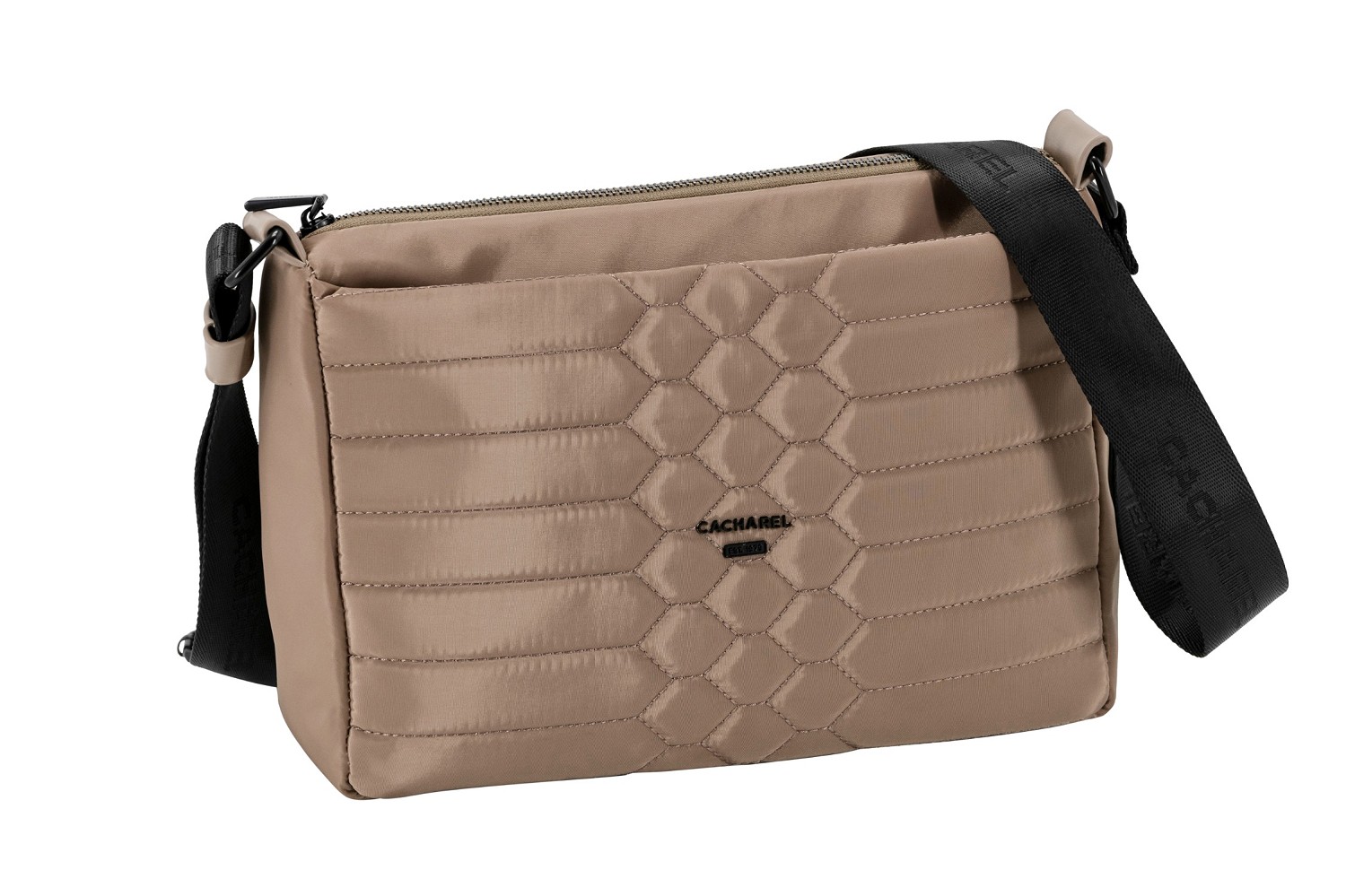 Bolso Bandolera rectangular acolchado tres compartimentos crema