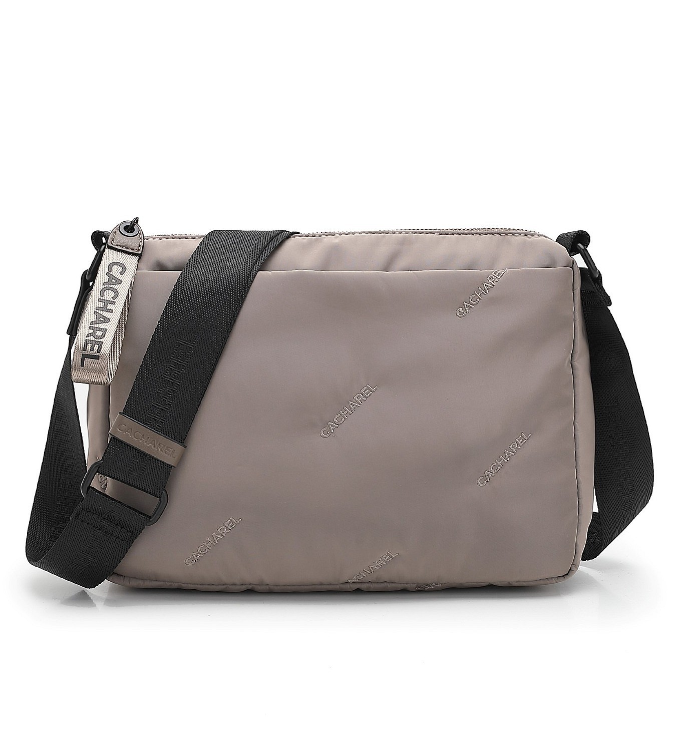 Elige funcionalidad con el bolso que dispone de tres compartimentos y con un diseño acolchado. Una correa ajustable y personalizada complementan este compañero perfecto para el día a día. Exterior personalizado con bordado cacharel al tono y tirador.