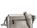 Bolso bandolera con logo metálico niquel negro en solapa delantera. Bolsillo trasero y asa bandolera regulable.