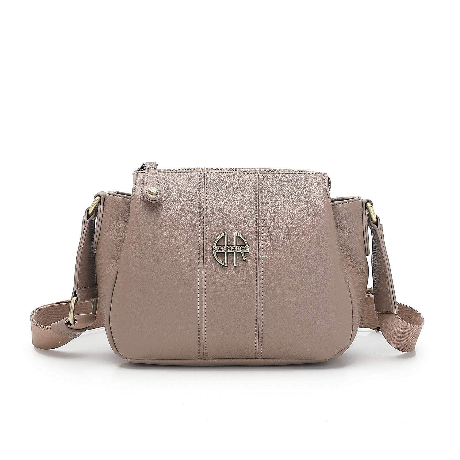 Bolso confeccionado en material sintético con logo CACHAREL en metálico, diseñado con tres compartimentos en el interior, bolsillo trasero y asa regulable.