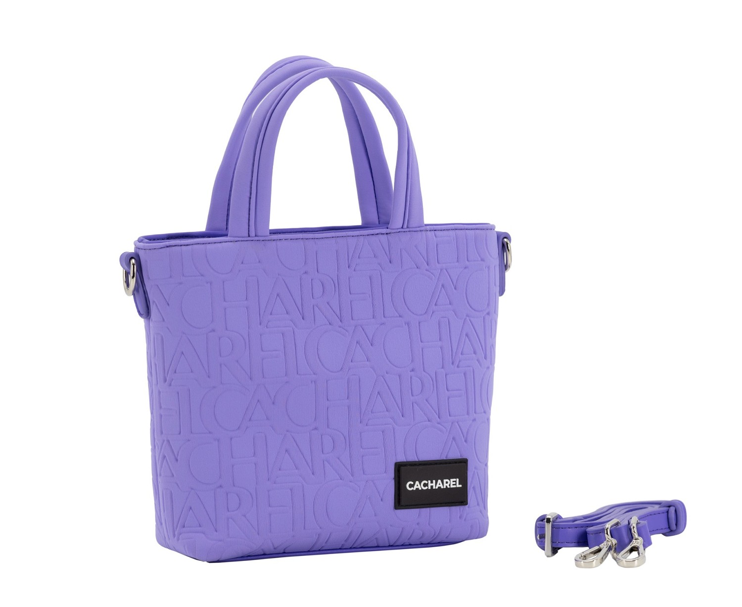 Bolso bandolera elaborado con material novedoso con estampado CACHAREL combiando con piel sintética. Apliques en tono niquel. Cierre con cremallera.