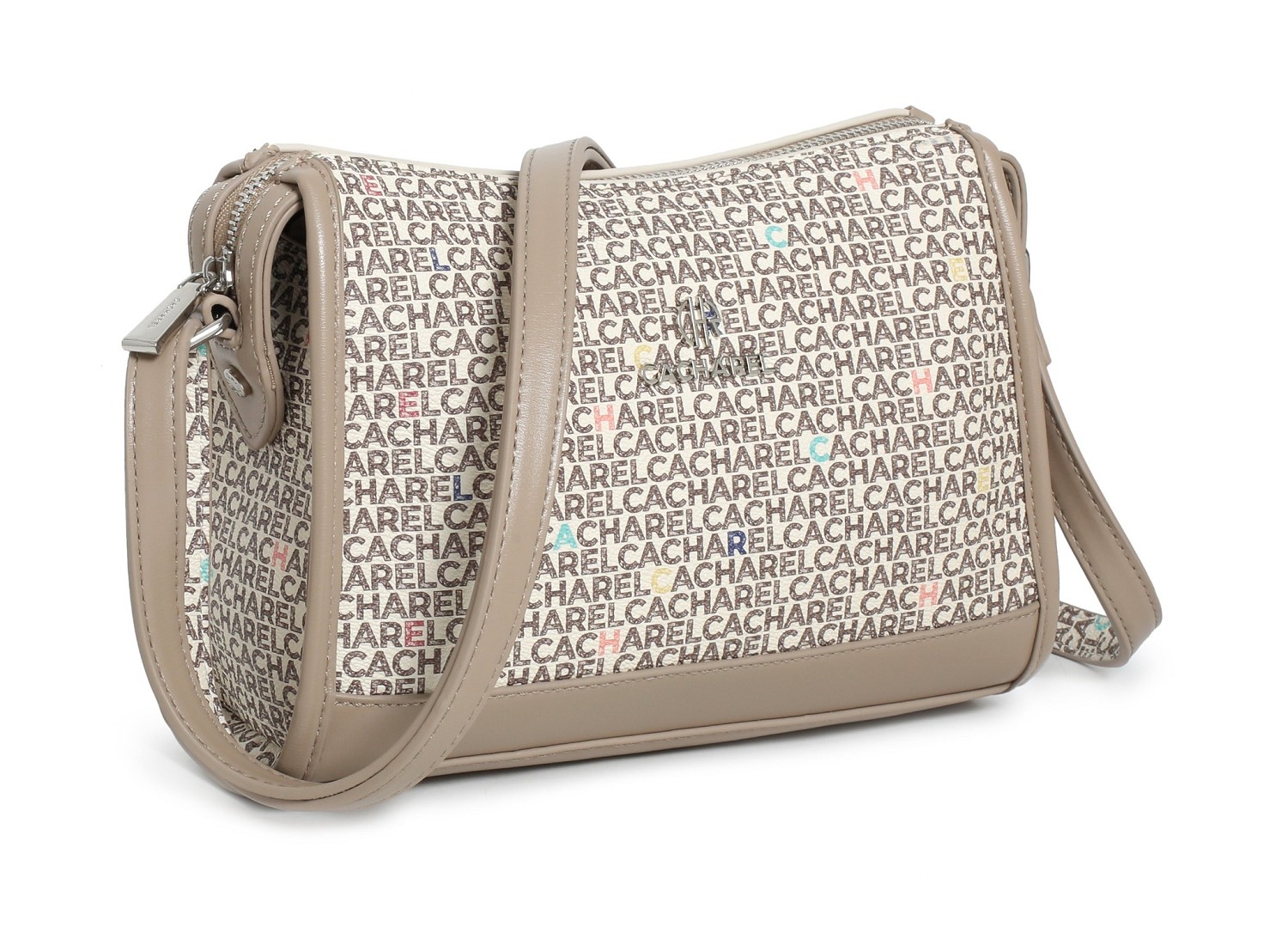 Bolso bandolera confeccionada en material sintético con estampado CACHAREL. Acabado exquisito y logotipo metálico en relieve en la parte delantera.