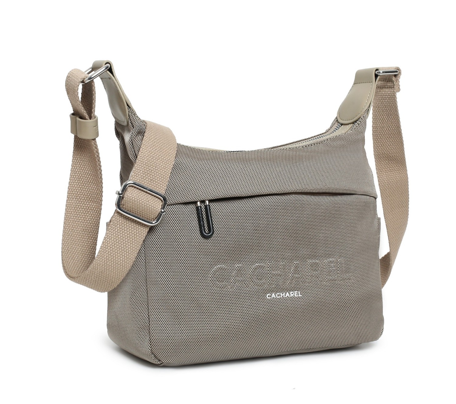 Bolso bandolera de tamaño mediano con doble compartimento y cierre con cremallera, asa bandolera ajustable y bolsillo exterior. Exterior personalizado con logo.