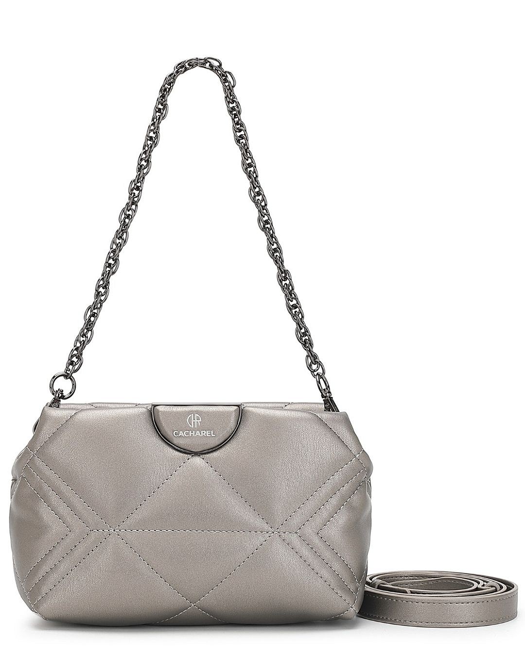 Bolso bandolera con novedoso acolchado en color acero, con asa bandolera regulable y cadena. Logo en la parte delantera del bolso. Tiradores personalizados y varios bolsillos interiores.