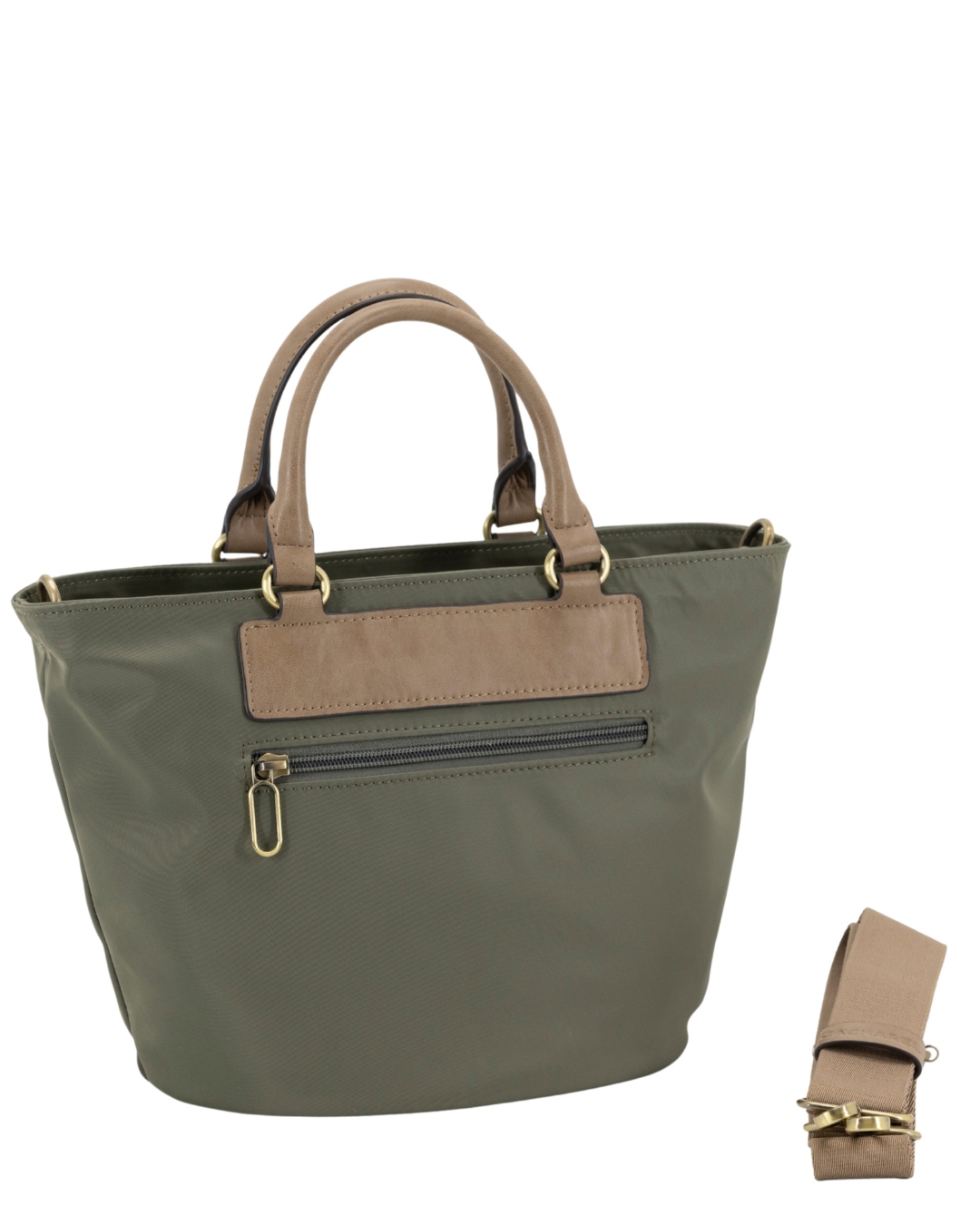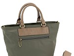 - Detalles exteriores:Â bolsillo en la parte delantera y trasera del bolso.Â