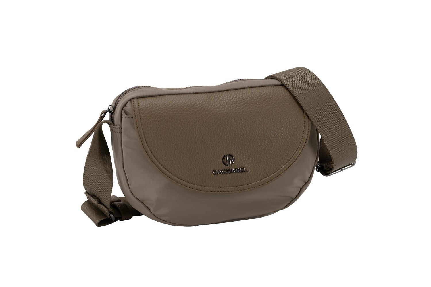 Bolso fabricado en nylon con banda de pu al tono, combinado con asa regulable al tono y tirador personalizado, varios bolsillos en el interior.