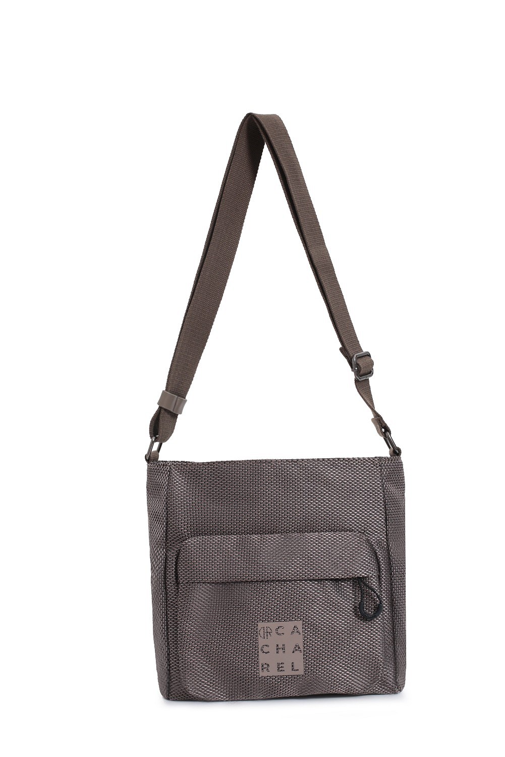 Bolso bandolera de tamaño mediano-grande cierre con cremallera, asa bandolera ajustable y bolsillo exterior. Exterior personalizado con logo en goma al tono y tirador en color negro personalizado.