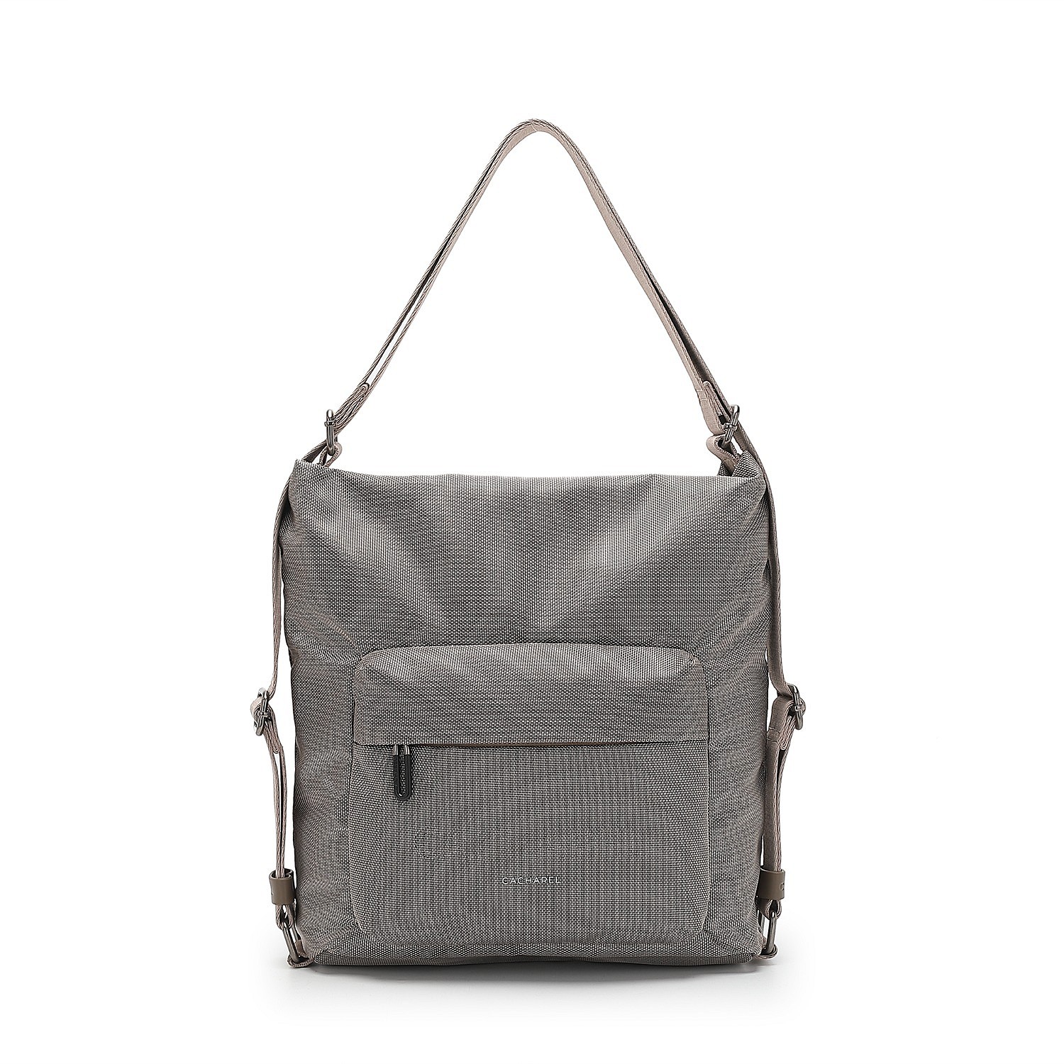 El bolso mochila confeccionado con nylon y personalizado con logo en bolsillo delantero. Cierre con cremallera, bolsillo delantero y uno trasero. Tiradores personalizados y varios bolsillos interiores.