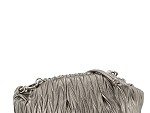 Bolso con novedoso plisado con asa de hombro. Cierre con boquilla. Logo metálico en la parte delantera del bolso. Tiradores personalizados y varios bolsillos interiores.