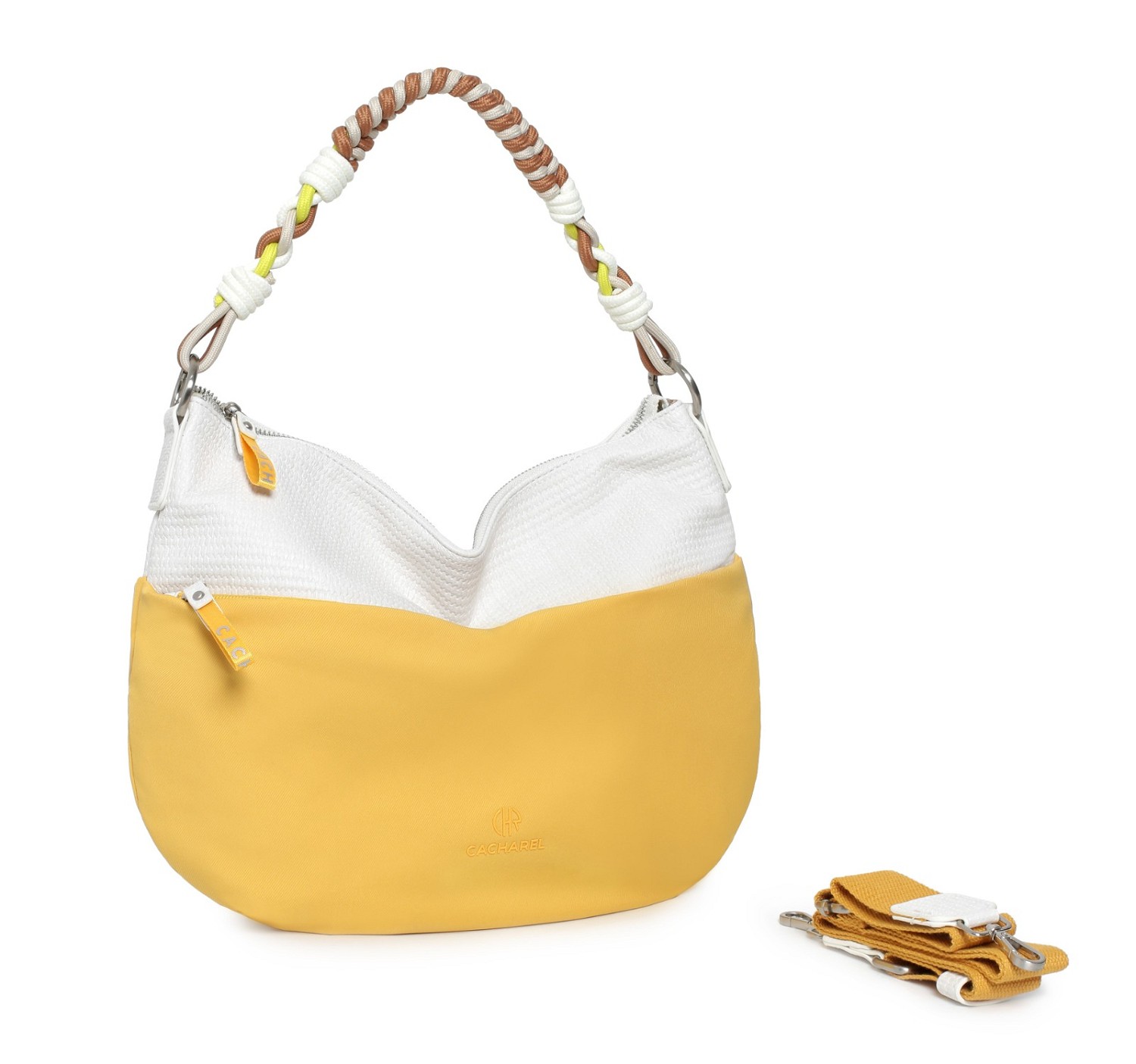 Shopper asa trenzada multicolor. Modelo de tamaño grande con cierre de cremallera, asa bandolera ajustable, bolsillo delantero y trasero. Exterior personalizado con logo al tono.