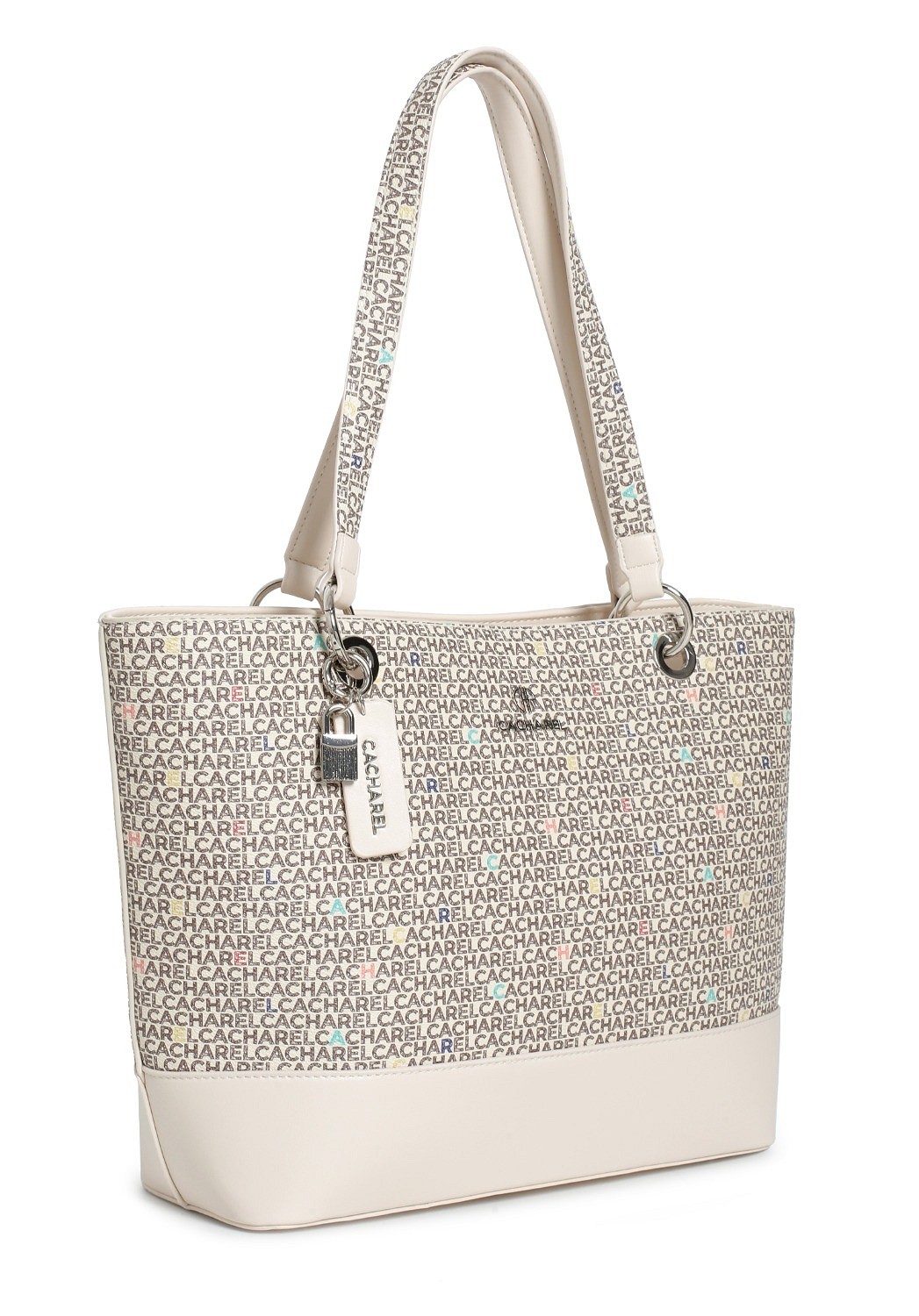 Espacioso bolso shopper confeccionado en material sintético con estampado CACHAREL. Acabado exquisito y logotipo metálico en relieve en la parte delantera con charm.