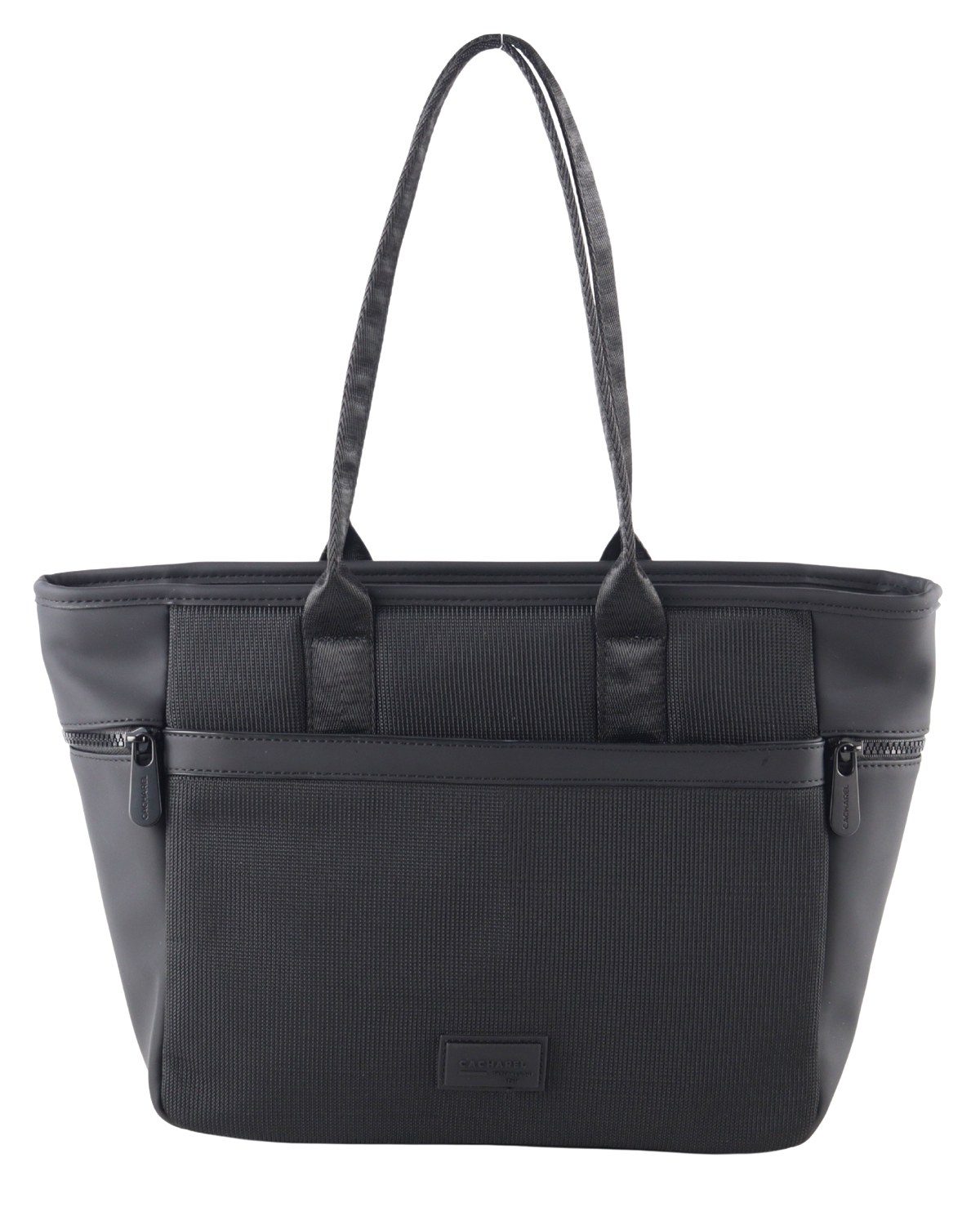 Shopper de tamaño grande con cierre de cremallera, bolsillo delantero y trasero. Exterior personalizado con logo de goma al tono y detalles cremalleras en color negro en ambos lados.