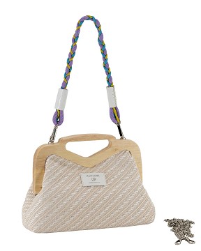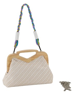Bolso Natural Cacharel con Asa de Madera y Correa Multicolor
