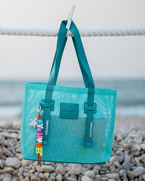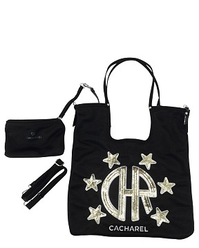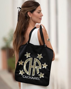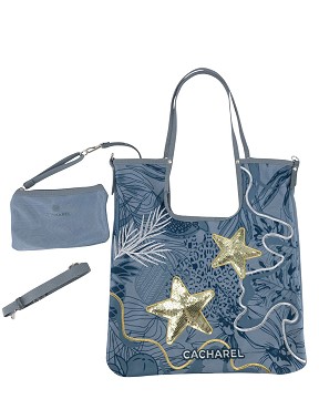Bolso Shopper Cacharel de Nylon con Estrellas y Logo Brillante