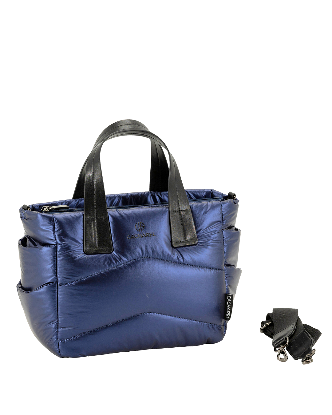 Mini Shopper fabricado en nylon ultra ligero para dar más comodidad al día a día. Tiradores personalizados y varios bolsillos en el interior. Asa bandolera regulable.