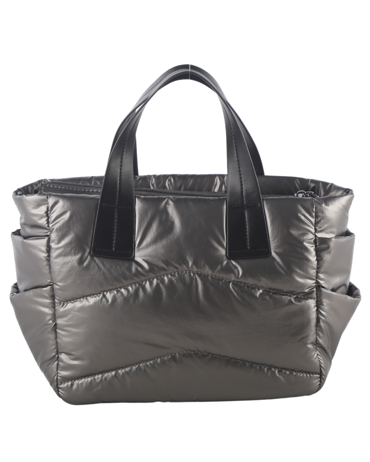 Mini Shopper fabricado en nylon ultra ligero para dar más comodidad al día a día. Tiradores personalizados y varios bolsillos en el interior. Asa bandolera regulable.