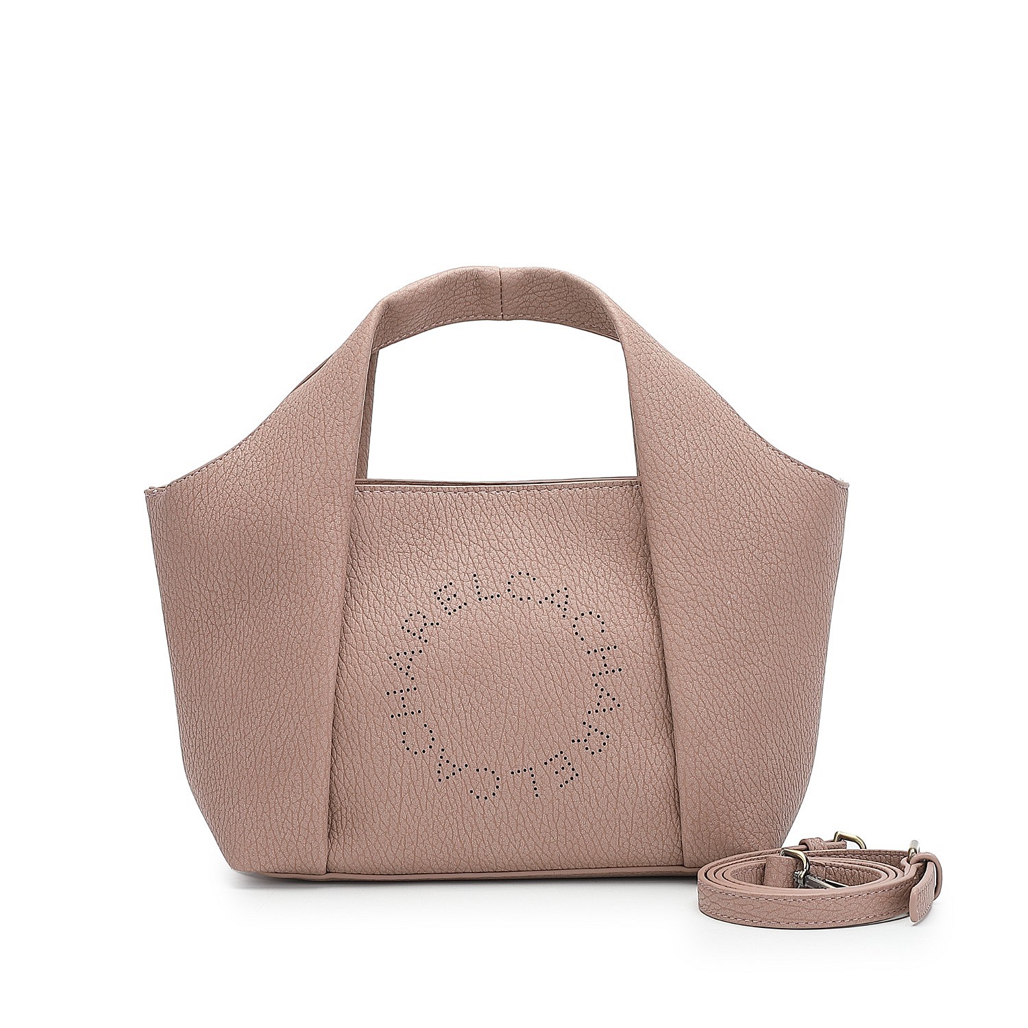 Mini shopper confeccionado en material sintético con logo CACHAREL perforado, diseñado para llevar de mano o cruzado.