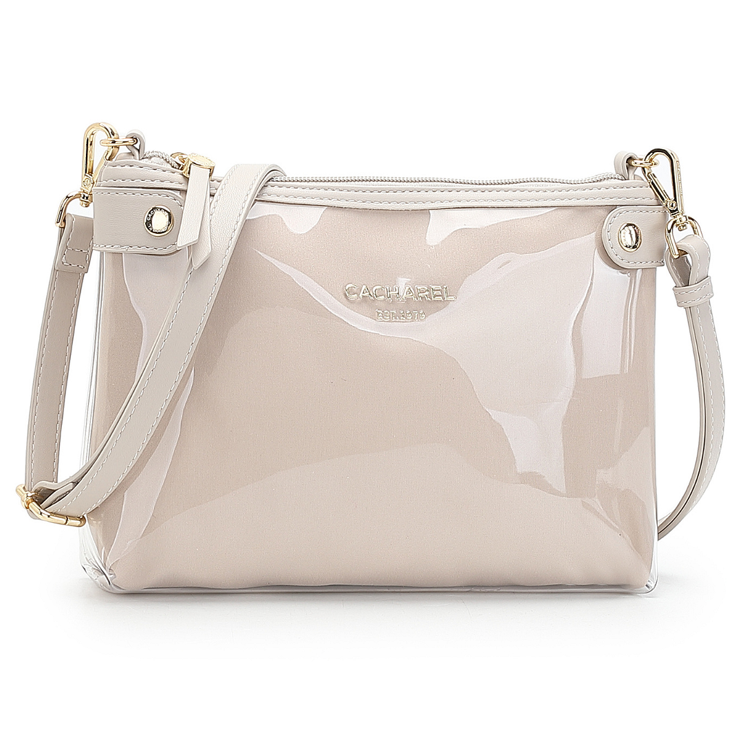 Bandolera de vinilo forma parte de la cápsula arcoíris siendo tendencia para esta primavera y verano que está a la vuelta de la esquina. Esta compuesto por un vinilo transparente, con el logo de CACHAREL grabado en relieve en la parte delantera, combinado con una lona al tono y material vegano del mismo color. Cierre con cremallera para mayor seguridad y asa bandolera regulable.