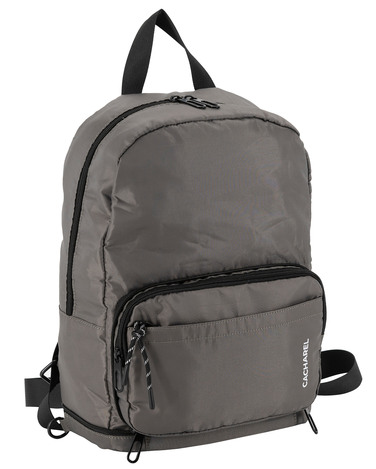 Elige funcionalidad con el bolso convertible en mochila. Es el compañero perfecto de viaje, dispone de bolsillo delantero. Exterior personalizado con logo cacharel en color blanco.