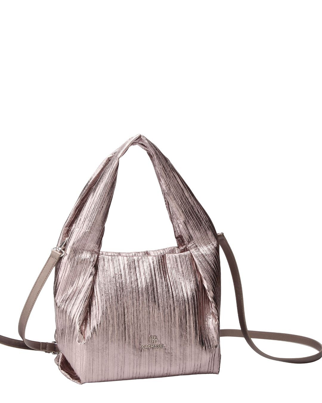 Elegante bolso Cacharel de estilo hobo con acabado metalizado y textura plisada, que aporta un toque sofisticado y moderno.